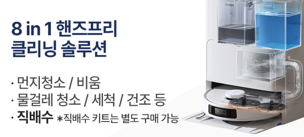 - 기능: 자동 먼지 비움, LDS 센서 기반 청소 매핑, 물걸레 진동 청소, 자동 충전, 앱 연동